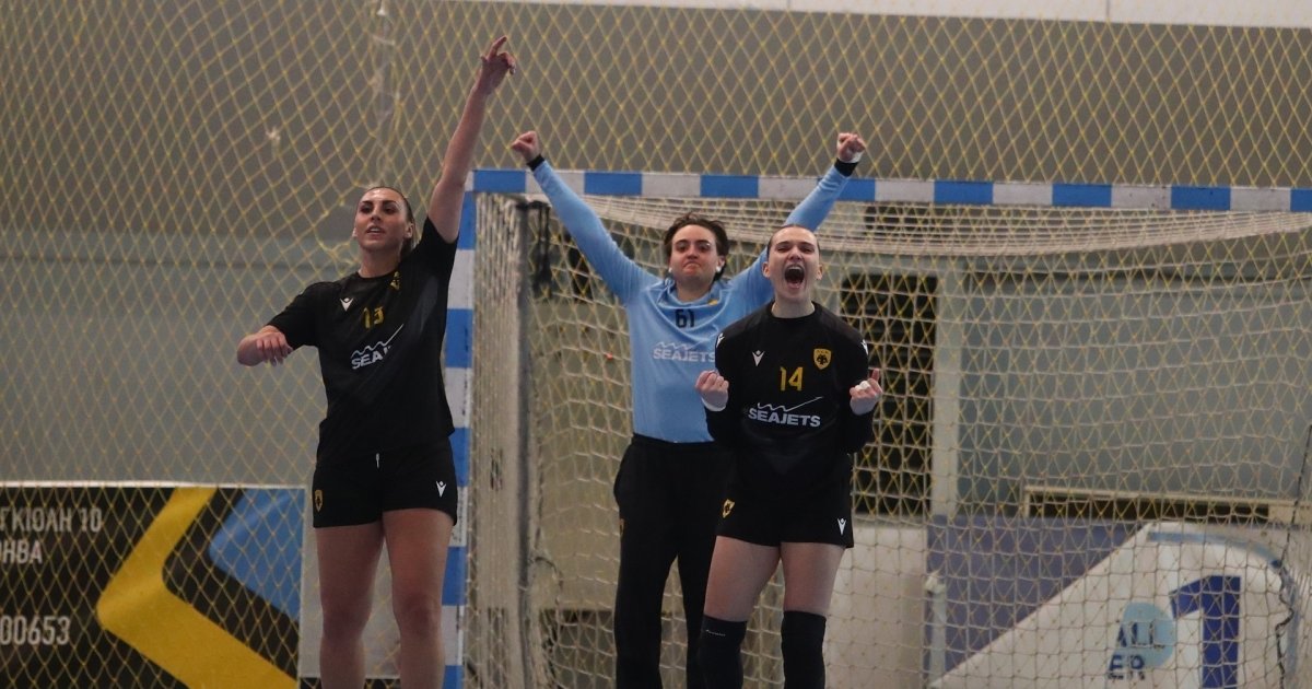 Η ΑΕΚ νίκησε τη Νέα Ιωνία με 33-27 στο ΟΑΚΑ και ουσιαστικά εξασφάλισε την πρώτη θέση στην κανονική περίοδο και το πλεονέκτημα έδρας στα play offs στο πρωτάθλημα χάντμπολ της Α1 γυναικών.