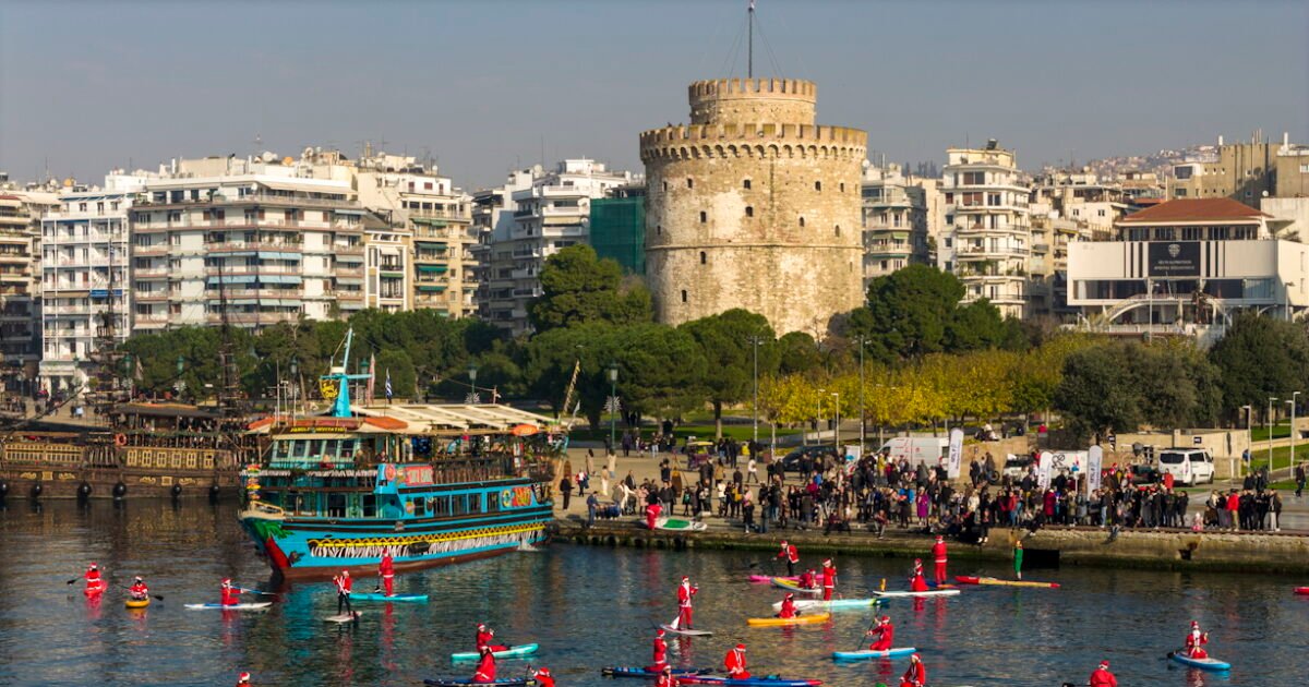 Οι συμμετέχοντες πήραν τις σανίδες τους, φόρεσαν τις γιορτινές στολές του Άη Βασίλη και με καλή διάθεση, μπήκαν στη θάλασσα της Θεσσαλονίκης για την καθιερωμένη χριστουγεννιάτικη βόλτα, με σανίδες SUP, η οποία φιλοδοξεί να καθιερωθεί ως θεσμός για την πόλη.