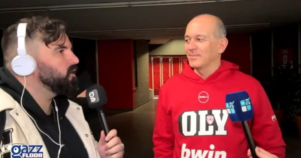 Ο Γιώργος Αγγελόπουλος μίλησε από το ΣΕΦ μετά την πολύ μεγάλη νίκη του Ολυμπιακού επί του Παναθηναϊκού AKTOR στο Telekom Center Athens.