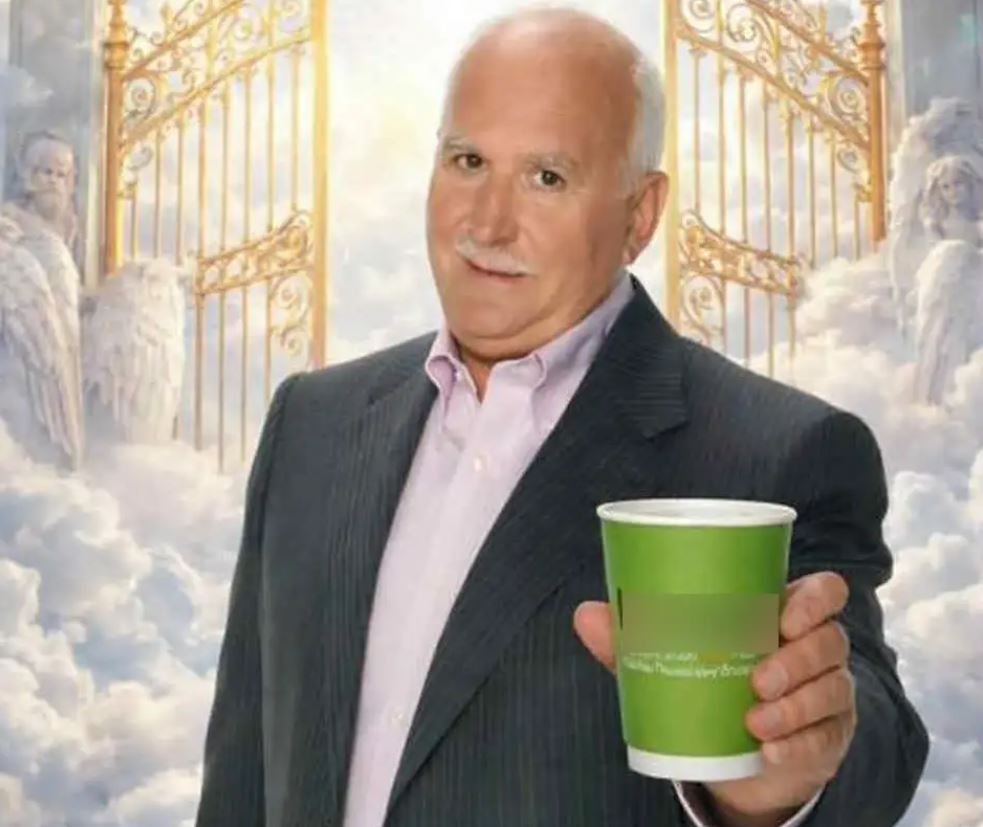 Στην εν λόγω φωτογραφία ο παρουσιαστής φαίνεται να… κερνάει καφέ από τις πύλες του παραδείσου.