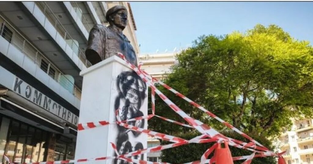 Την προτομή του αρχιφύλακα Γιώργου Λυγγερίδη, που σκοτώθηκε ενώ βρισκόταν σε υπηρεσία, στη διάρκεια επεισοδίων στου Ρέντη, βανδάλισαν άγνωστοι, χθες το βράδυ, με μαύρη μπογιά.
