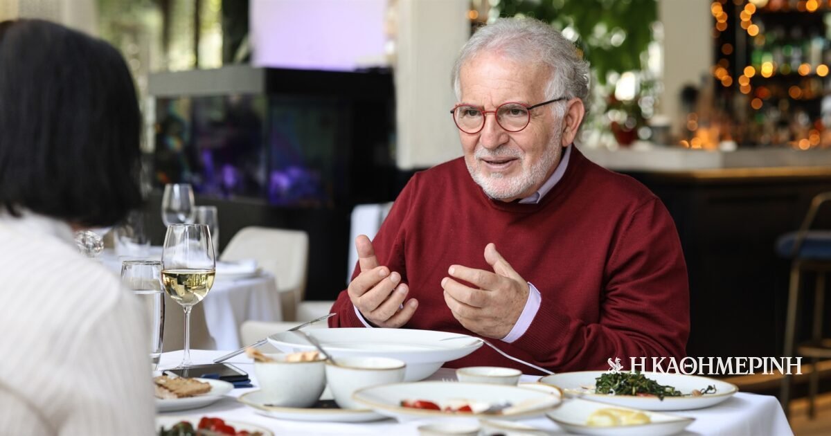 Στη «Σκορπίνα» απολαύσαμε σταμναγκάθι, μους ταραμοσαλάτα, ντοματίνια, λαβράκι φιλέτο στη σχάρα και γιουβέτσι με θαλασσινά. Μου μίλησε για τα τρία παιδιά του – τη Ναταλία που είναι χειρουργός-οφθαλμίατρος και επέστρεψε στην Ελλάδα μετά λαμπρή καριέρα στις ΗΠΑ, τον Φάνη που εγκατέλειψε τη Νομική για να γίνει υπαρξιακός ψυχοθεραπευτής, τον Αγγελο, επεμβατικό καρδιολόγο, καθηγητή στη Βοστώνη. Αλλά και για τη σύζυγό του Ελένη, με την οποία είναι αχώριστοι από το τέταρτο έτος της Ιατρικής. Τι είναι έρωτας; τον ρωτώ. «Δεν περιορίζεται στο σεξ, είναι να ζεις αισθαντικά την κάθε στιγμή. Ο ερωτικός άνθρωπος είναι αυτός που έλκει γιατί ξέρει να απολαμβάνει και το δευτερόλεπτο της ζωής και είναι το αντίθετο του ερωτευμένου, που ζητεί από τον άλλο, ή μάλλον την εικόνα του, να τον κάνει να νιώσει καλά. Κι αυτό κάποτε τελειώνει. Καμία σχέση δεν κρατάει αν δεν την υπερασπίζεσαι».