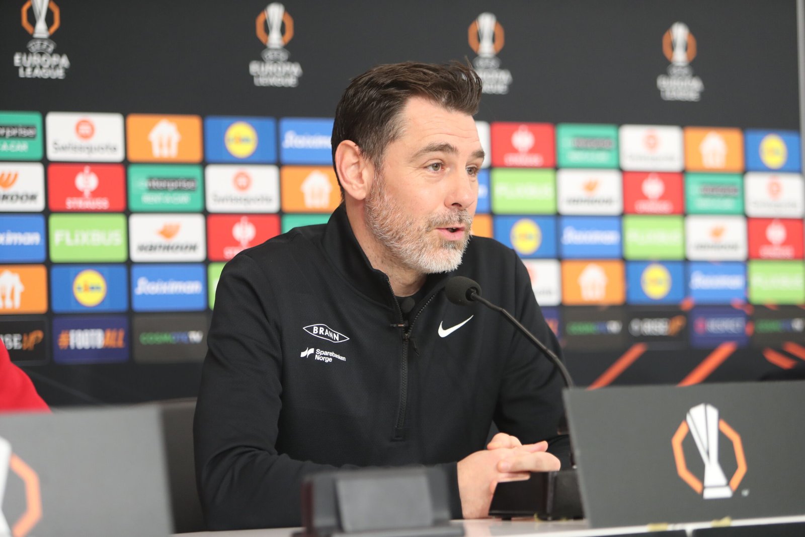 “Δεν ερχόμαστε εδώ με ανοιχτά φτερά, μετά την βαριά ήττα μας από την Μόλντε. Παίζουμε σε ένα ιστορικό γήπεδο όπως η Τούμπα, απέναντι σε μία ποιοτική ομάδα, για την οποία ξέρουμε τα πάντα. Προετοιμαστήκαμε όπως πάντα στον καλύτερο δυνατό βαθμό, για να χτυπήσουμε τις αδυναμίες του ΠΑΟΚ” τόνισε αρχικά ο Ισλανδός προπονητής της Μπραν, συνεχίζοντας:
