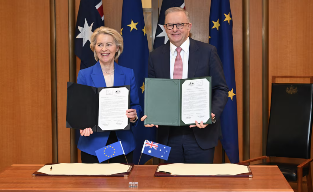 Σε συμφωνία ελεύθερων συναλλαγών κατέληξαν ΕΕ και Αυστραλία, ολοκληρώνοντας σχεδόν μια δεκαετία συνομιλιών, καθώς οι δύο πλευρές πιέζουν να συσφίγξουν τους δεσμούς τους και να αναζωογονήσουν ένα status quo που βασίζεται σε κανόνες και δέχεται επιθέσεις από την κυβέρνηση Τραμπ.