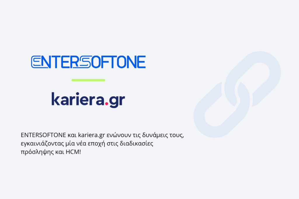 Την έναρξη στρατηγικής συνεργασίας ανακοίνωσαν η Entersoftone και το kariera.gr, αντανακλώντας την κοινή τους δέσμευση για την ανάληψη δράσεων και πρωτοβουλιών που προάγουν τη διαμόρφωση ενός πιο συγχρόνου και αποδοτικού μοντέλου λειτουργίας σε όλο το φάσμα της διαχείρισης ανθρώπινου δυναμικού και επιταχύνουν έμπρακτα τον ψηφιακό μετασχηματισμό της λειτουργίας HR.