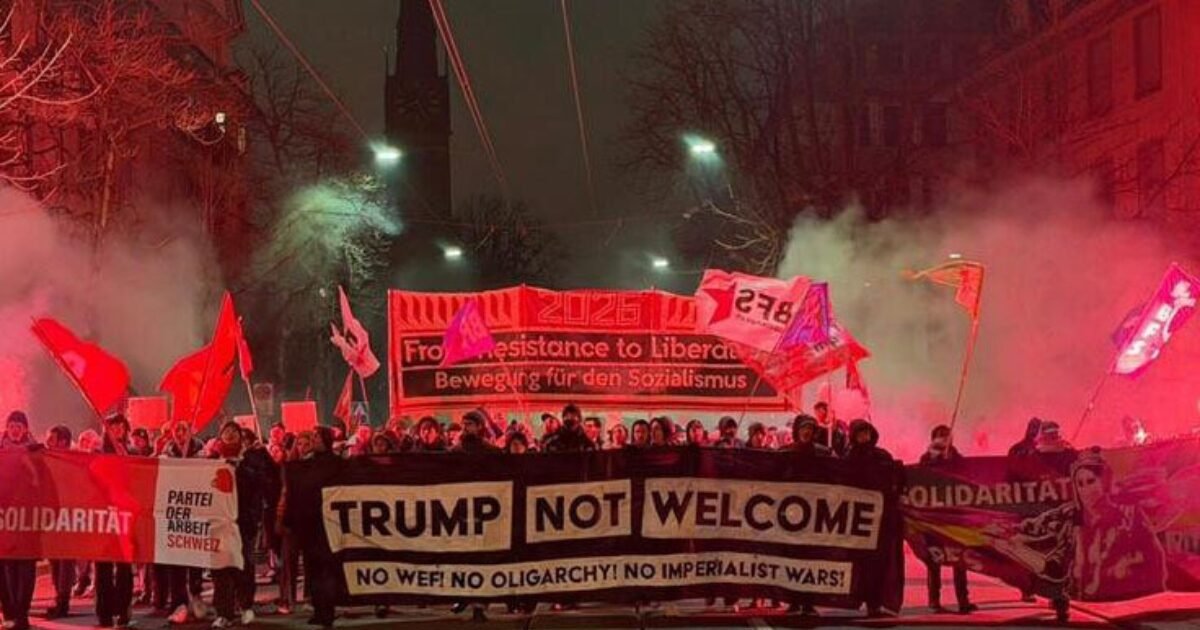 Περίπου 2000 άνθρωποι διαδήλωσαν το βράδυ της Δευτέρας 19.01.2026, στη Ζυρίχη, μετά από πρόσκληση κομμάτων και οργανώσεων της αριστεράς, για να διαμαρτυρηθούν για την έλευση του αμερικανού προέδρου στο φόρουμ του Νταβός, κρατώντας ένα πανό που έγραφε «Ο Τραμπ είναι ανεπιθύμητος».