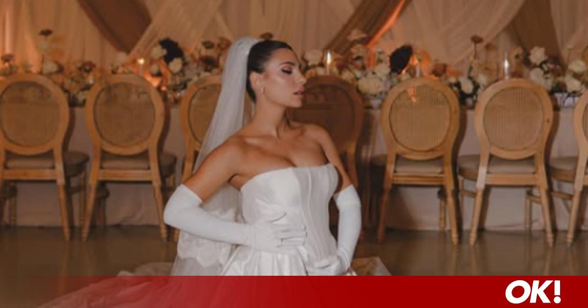 Στα στιγμιότυπα, η ίδια ποζάρει με το νυφικό της στον χώρο της δεξίωσης, ενώ σε άλλες εικόνες καταγράφονται τρυφερές στιγμές με τον σύζυγό της, καθώς και στιγμές προετοιμασίας πριν την τελετή.
