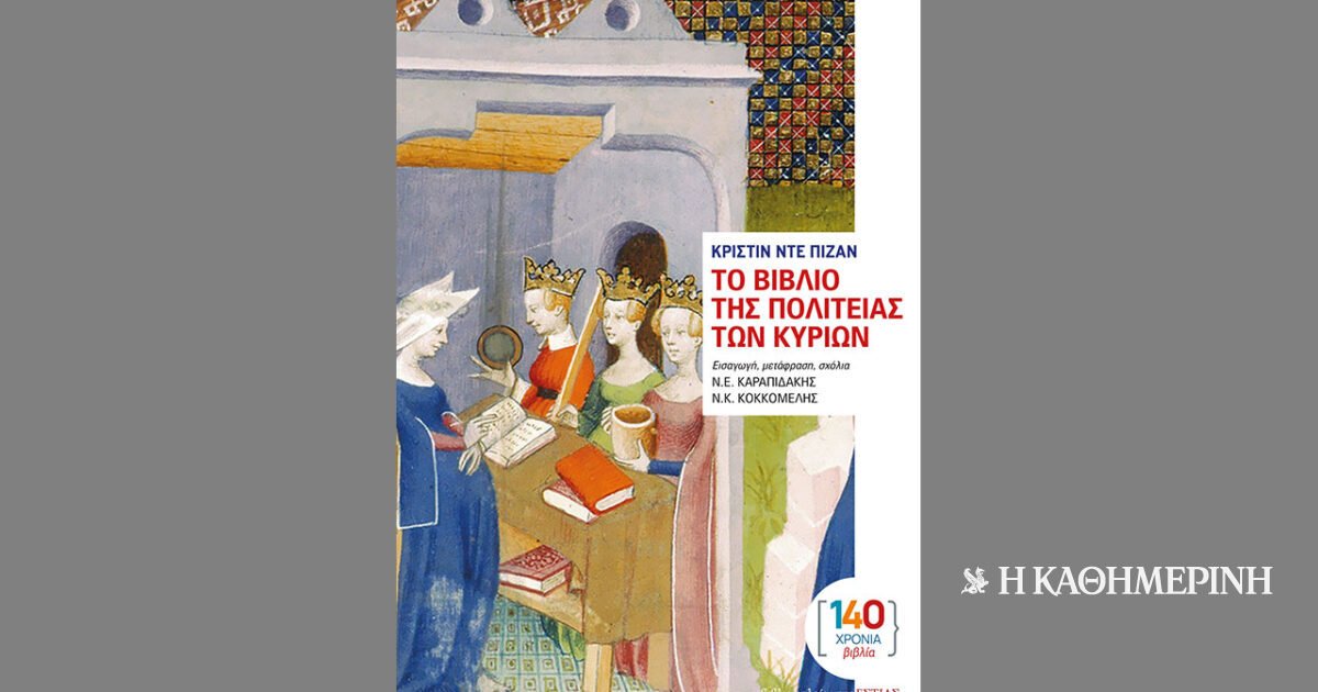 Από «Το βιβλίο της πολιτείας των κυριών» της Κριστίν ντε Πιζάν, γραμμένο ανάμεσα στο 1405 και το 1407, με υπότιτλο «Πραγματεία του 15ου αιώνα», παρελαύνουν περισσότερες από 160 γυναικείες μορφές –μυθικές, ιστορικές, βιβλικές–, που μετατρέπονται από τη συγγραφέα σε παραδείγματα προς μίμηση. Αυτό το άγνωστο έργο για τα ελληνικά εκδοτικά πράγματα, μόλις κυκλοφόρησε για πρώτη φορά στη χώρα μας από τις Εκδόσεις της Εστίας σε εισαγωγή, μετάφραση και σχόλια των Ν. Ε. Καραπιδάκη και Ν. Κ. Κοκκομέλη.
