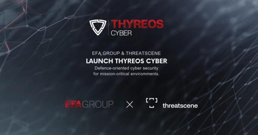 Η ThreatScene, εταιρία με εξειδίκευση στον τομέα της κυβερνοασφάλειας, και το EFA GROUP, διεθνής όμιλος με ισχυρή ελληνική παρουσία στους τομείς της Άμυνας, της Ασφάλειας και της Αεροδιαστημικής, ανακοινώνουν την ίδρυση της κοινής εταιρίας (joint venture) THYREOS CYBER, με στόχο την ανάπτυξη προηγμένων δυνατοτήτων αμυντικής κυβερνοασφάλειας.