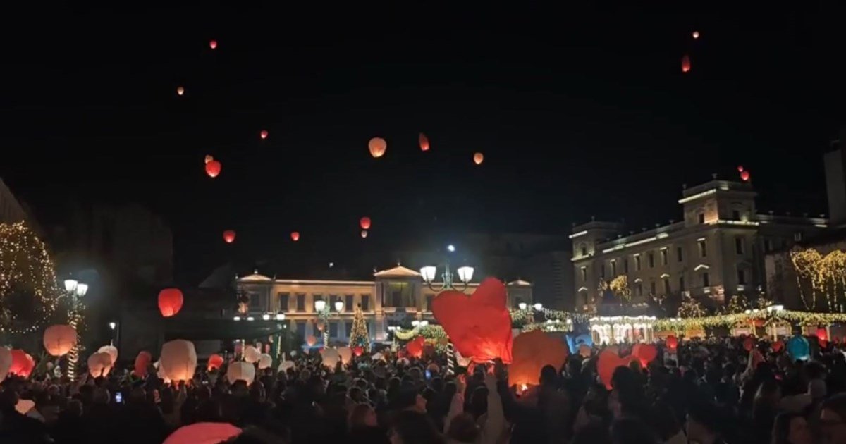 Η “Νύχτα των Ευχών”, η οποία είχε αναβληθεί την Παραμονή των Χριστουγέννων λόγω των καιρικών συνθηκών, βρίσκεται σε πλήρη εξέλιξη, με μικρούς και μεγάλους να στέλνουν ψηλά τις ευχές τους για το νέο έτος. Το σκηνικό είναι φέτος πιο παραμυθένιο από ποτέ, καθώς τα 3.000 βιοδιασπώμενα φαναράκια “πετούν” έχοντας ως φόντο τη φωτισμένη Χριστουγεννιάτικη Αγορά που έχει στήσει ο Δήμος.