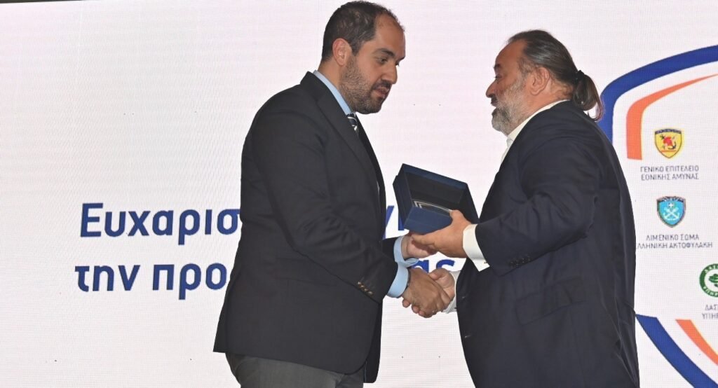Σε μια λιτή αλλά ιδιαίτερα συμβολική τελετή στο Κέντρο Πολιτισμού Ίδρυμα Σταύρος Νιάρχος, ο Υπουργός Κλιματικής Κρίσης και Πολιτικής Προστασίας, κ. Γιάννης Κεφαλογιάννης, βράβευσε τον κ. Μάριο Ηλιόπουλο και τη SEAJETS για την πολύτιμη και αποφασιστική συμβολή τους στις φετινές επιχειρήσεις κατάσβεσης πυρκαγιών μεγάλης έκτασης.