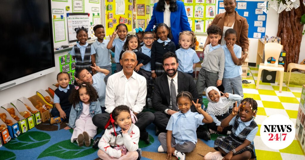 Επίσκεψη σε παιδικό σταθμό στο Μπρονξ της Νέας Υόρκης πραγματοποίησαν ο δήμαρχος Ζόχραν Μαμντάνι και ο πρώην πρόεδρος των ΗΠΑ, Μπαράκ Ομπάμα
