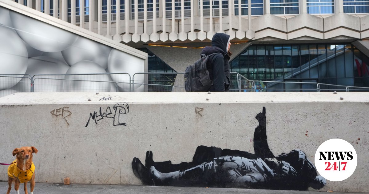 Δυο παιδιά, ξαπλωμένα, κοιτούν ψηλά και το ένα δείχνει με το χέρι του προς τον ουρανό… Ο βρετανός καλλιτέχνης Banksy επιβεβαίωσε πως ένα νέο γκράφιτι που εμφανίστηκε σε τοίχο κτηρίου στο Λονδίνο είναι δημιούργημά του.