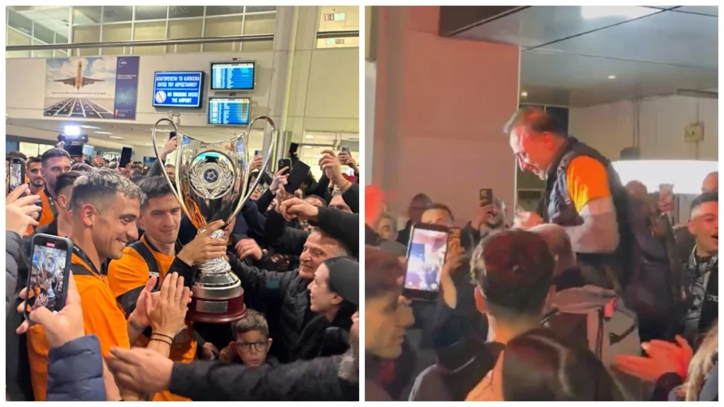 Παρά το προχωρημένο της ώρας, πλήθος κόσμου είχε συγκεντρωθεί για να υποδεχθεί τους Κυπελλούχους, δημιουργώντας μια εντυπωσιακή ατμόσφαιρα. Με συνθήματα και ασταμάτητο ενθουσιασμό, οι φίλαθλοι αποθέωσαν τους παίκτες και το τεχνικό επιτελείο του Χρήστου Κόντη, δείχνοντας την ευγνωμοσύνη και την περηφάνια τους για τη μεγάλη επιτυχία.