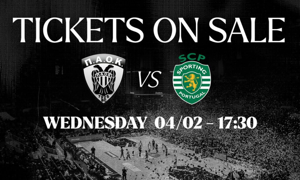 Η ΚΑΕ ΠΑΟΚ ανακοινώνει ό,τι ξεκίνησε η διάθεση των εισιτηρίων για τον αγώνα ΠΑΟΚ – Sporting CP που θα διεξαχθεί στο PAOK Sports Arena την Τετάρτη (4/2) στις 17:30 για την 5η αγωνιστική της δεύτερης φάσης του FIBA Europe Cup.