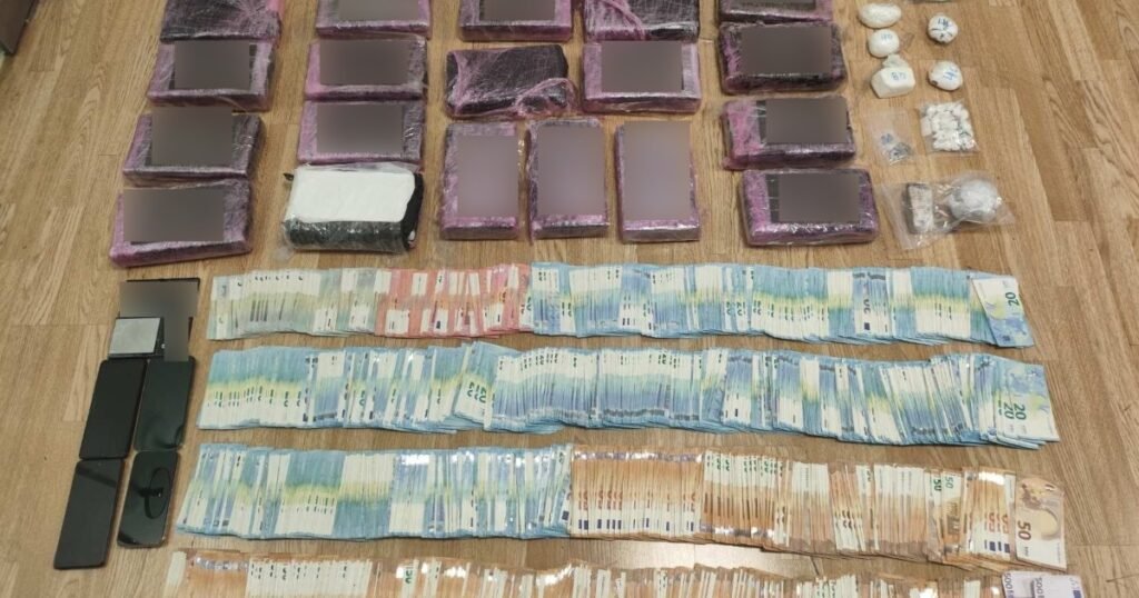 Ακολούθησαν έρευνες σε καφετέρια ιδιοκτησίας του 29χρονου, στην οικία του 21χρονου, καθώς και σε οικία που χρησιμοποιούνταν ως χώρος αποθήκευσης ναρκωτικών ουσιών (καβάτζα), όπου οοι δύο άνδρες κατείχαν από κοινού, με σκοπό τη διακίνηση, κοκαΐνη μικτού βάρους 26 κιλών και 228 γραμμαρίων, κατεργασμένη κάνναβη (σοκολάτα) μικτού βάρους 80,9 γραμμαρίων και ακατέργαστη κάνναβη μικτού βάρους 40,9 γραμμαρίων.