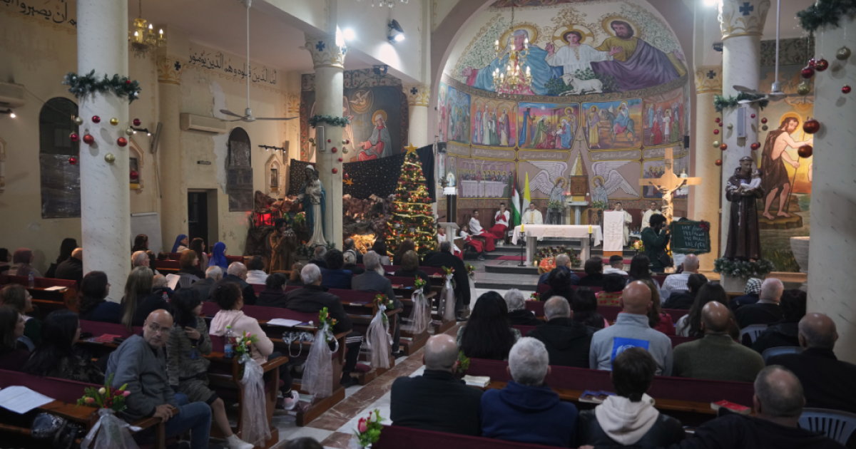 Η Εκκλησία της Αγίας Οικογένειας είναι ο μόνος καθολικός ναός που έχει απομείνει στην πόλη της Γάζας. Εκεί, πήγαν οι πιστοί για να ανάψουν κεριά και να προσευχηθούν, όμως η λάμψη των φώτων στο μεγάλο χριστουγεννιάτικο δέντρο και οι εορταστικές διακοσμήσεις δεν μπόρεσαν να κρύψουν τη σκληρή πραγματικότητα που άφησε πίσω του ο πόλεμος. Η εκκλησία αποφάσισε να περιορίσει τους εορτασμούς, αλλά οι καμπάνες χτύπησαν δυνατά και αυτό ήταν αρκετό για να γεμίσει τους ανθρώπους με χαρά.