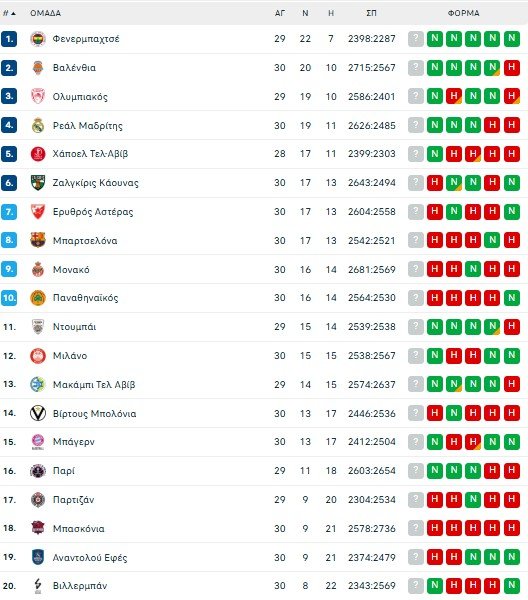 Οι πράσινοι μετρούν 4 σερί ήττες στη Euroleague και καλώς ή κακώς είναι με την πλάτη στον τοίχο σε μια χρονιά που το Final Four γίνεται στην έδρα τους. Έχει 16-14 ρεκόρ και είναι οριακά να μείνει εκτός 10άδας, έχοντας μάλιστα και το δυσκολότερο πρόγραμμα από όλους.