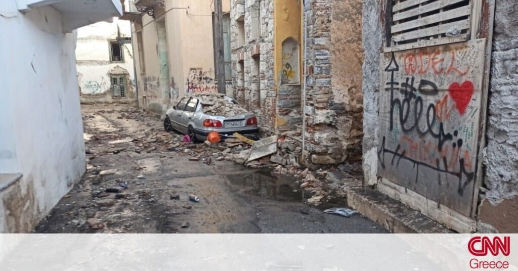 Ο Εγκέλαδος προκάλεσε σημαντικές ζημιές σε εγκαταλελειμμένα κτήρια εντός της πόλης αλλά και σε χωριά της Χίου.