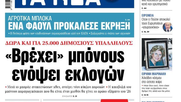 Διαβάστε στα «ΝΕΑ» της Πέμπτης: