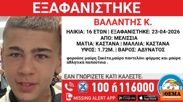 Παράλληλα, ο οργανισμός συνεργάζεται με μέσα ενημέρωσης και άλλους φορείς, προκειμένου να ενισχυθεί η προσπάθεια εντοπισμού του 16χρονου.