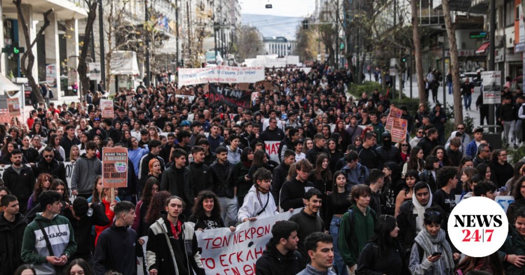 Ρίγη συγκίνησης από την μαζική συμμετοχή των φοιτητικών και μαθητικών συλλόγων στο συλλαλητήριο στο κέντρο της Αθήνας με αφορμή την συμπλήρωση τριών χρόνων από το δυστύχημα των Τεμπών.