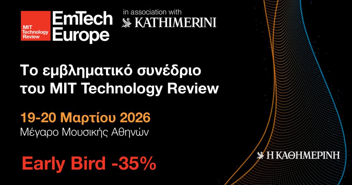 Το ΕmTech Europe, το πολυαναμενόμενο συνέδριο του ΜΙΤ Technology Review, επιστρέφει για τρίτη χρονιά στο Μέγαρο Μουσικής Αθηνών, στις 19-20 Μαρτίου 2026, με την υπογραφή της Καθημερινής.