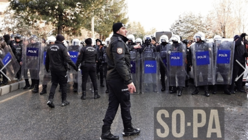 Σύμφωνα με το DEM, τρίτη δύναμη στο τουρκικό κοινοβούλιο, που οργάνωνε τη συγκέντρωση αυτή στη συνοικία Σαντζάκτεπε, μέλη του κόμματος συνελήφθησαν επίσης.