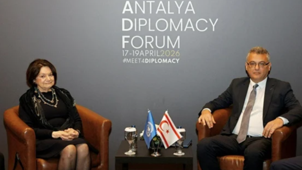 Με έντονο συμβολισμό και ερωτήματα ως προς τα μηνύματα που εκπέμπονται, πραγματοποιήθηκε η συνάντηση του κατοχικού ηγέτη Τουφάν Ερχιουρμάν με την αναπληρώτρια Γενική Γραμματέα των Ηνωμένων Εθνών για πολιτικές υποθέσεις και ειρηνευτικές αποστολές, Ρόζμαρι Ντι Κάρλο, στο περιθώριο του Antalya Diplomacy Forum στην Τουρκία (φωτογραφία, επάνω).